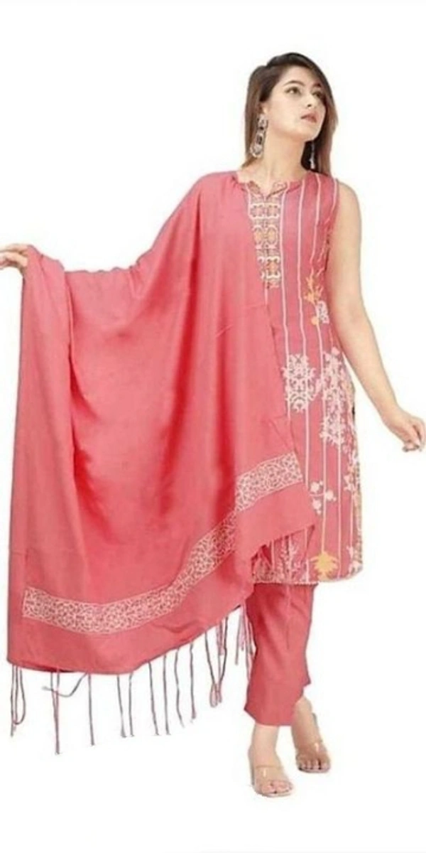 Women's Elegant Rayon Kurta Set Women's Elegant Rayon Kurta Set *Fabric*: Rayon *Type*: Kurta, Bottom and Dupatta Set *Style*: Variable *Design Type*: Straight *Sizes*: M (Bust 38.0 inches), L (Bust 40.0 inches), XL (Bust 42.0 inches), 2XL (Bust 44.0 inches) *Returns*: Within 7 days of delivery. No questions asked