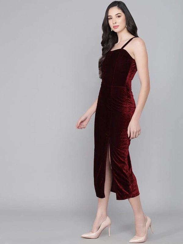 Name: Vaararo Women Maroon Valvet Long Fish-cut Dress